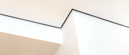 Потолок не касается стен, вместо стыка — аккуратный зазор, прекрасное украшение для современного интерьера